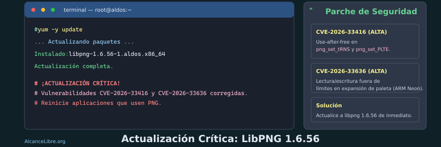 Disponible LibPNG 1.6.56 en ALDOS, corrigiendo vulnerabilidades CVE-2026-33416 y CVE-2026-33636